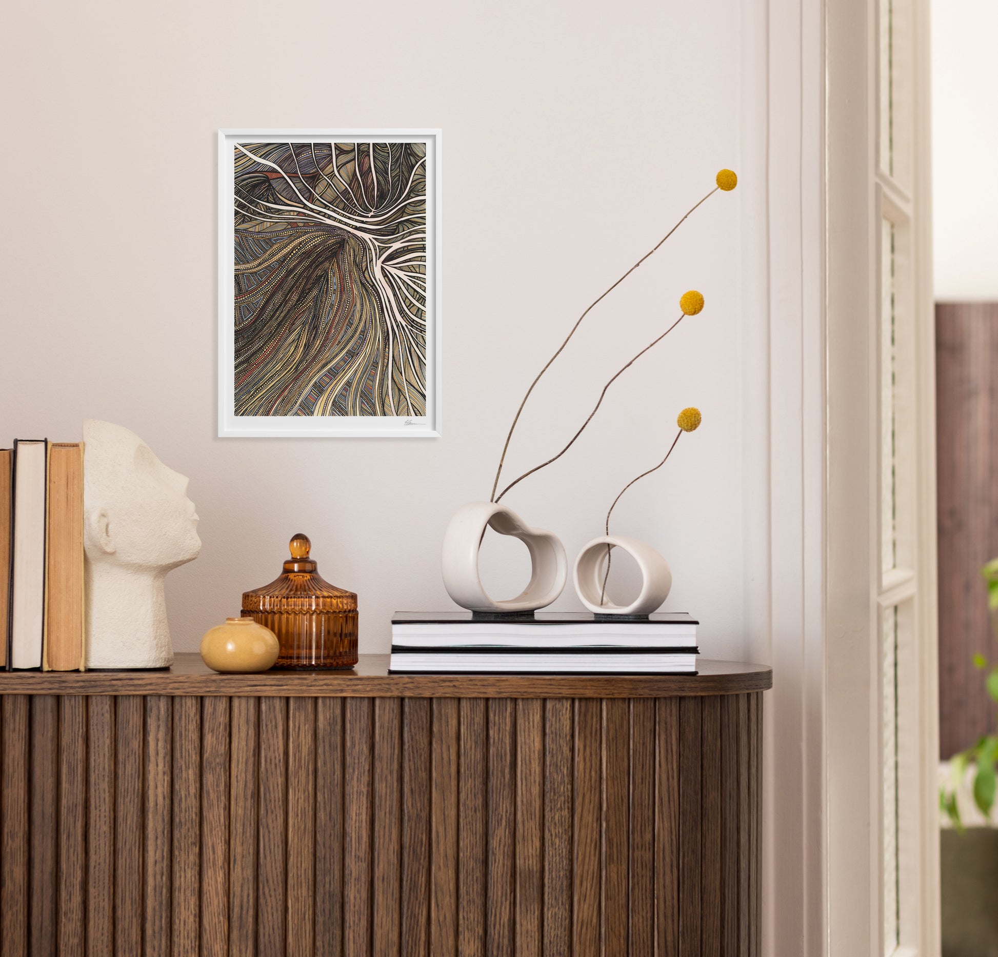 Our frames are crafted from FSC®-certified wood in white, combining sustainability with a sleek, modern design. Available in multiple sizes, each frame features high-quality glass windows for a luxurious finish. Each piece arrives expertly fitted and ready to hang, making it easy to display your new fine art prints beautifully.